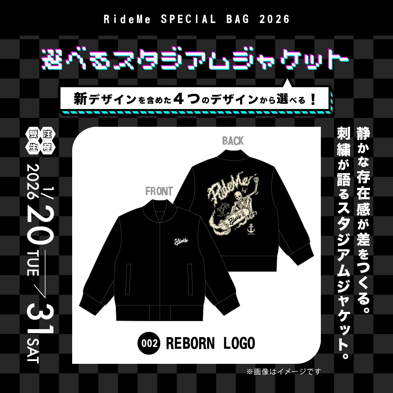 今回はスタジアムジャケット(4種類)が選べます。